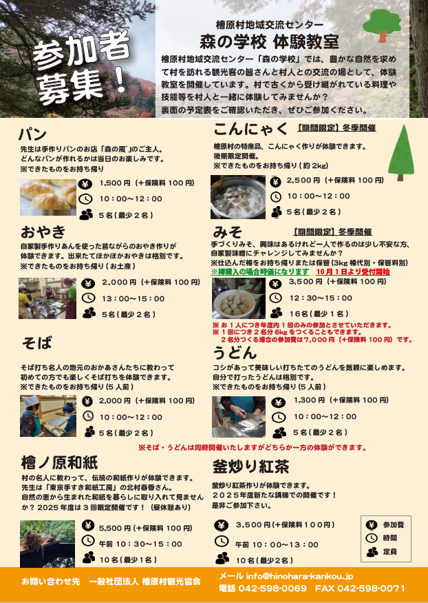 森の学校後期10月~2026年3月予定表公開しました。※みそ教室時間訂正があります。 みそ教室受付中!