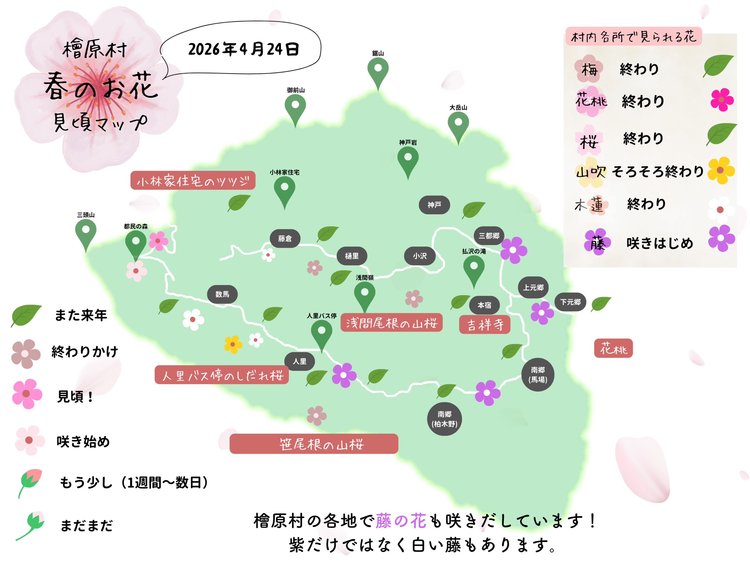 しだれ桜や花桃が終わりを迎えやまぶきも標高の高い場所になっております。