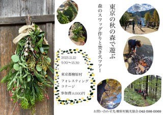 東京の秋の森で遊ぶ 森のスワッグ作りと焚火ツアー